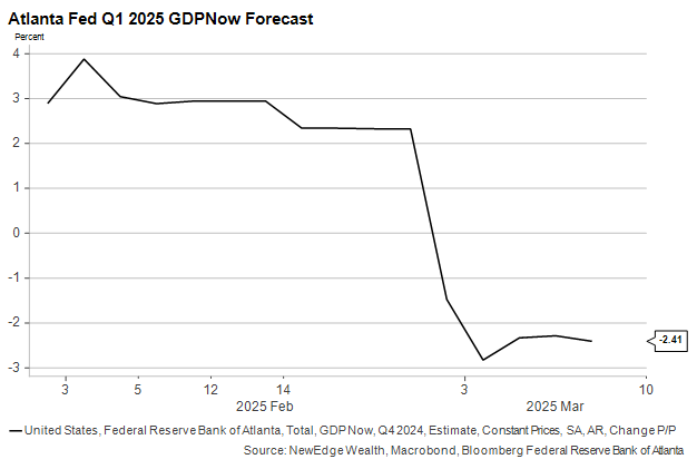 Some of the most reliable economic forecasters are onto this trend. The Federal Reserve Bank of Atlanta publishes a running “NowCast” of current quarter GDP. We are still early in the Q1 data cycle, but NowCast’s current estimate of negative 2.4% annualized growth would make the start of 2025 the weakest in years.