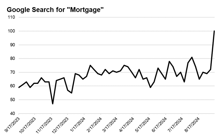 For example, as our Brian Nick flagged, Google search trends for “mortgage” have spiked in recent days as potential home buyers/sellers considering taking advantage of lower rates.