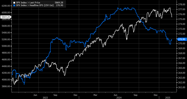 We have been observing just how much investors wanted this year to be a boon of positive policy drivers, with rather complacent consensus expectations for immediate beneficial offsets to detrimental policies (i.e., tax cuts to offset tariffs), an assumption that the “bark was worse than the bite” on policies like tariffs and geopolitical concerns, and even hope for a “Trump put” that would prevent any kind of market decline.