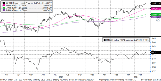 S&P 500 Machinery Industry Absolute (Top) and Relative to the S&P 500 (bottom)