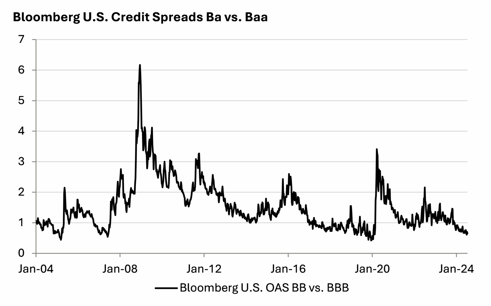 As we said above, a muddle-through market environment in which growth slows but stops short of a recession would likely be fine for High Yield returns, though other asset classes like equities and core bonds would probably perform better. But given its rich starting point, in a moderate to severe recession, High Yield could perform worse than equities on a risk-adjusted basis, as it did in 2008. It would also struggle should a return to high inflation unsettle bond markets a la 2022.