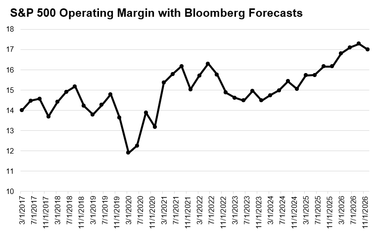 This all stands in contrast to the lofty expectations for corporate margin expansion that are currently being baked into S&P 500 earnings estimates. The chart below shows that the current consensus has margins returning to their 2022 peak in 2025 and pressing to new highs in 2026.