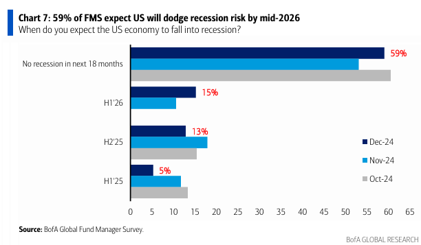 We are not currently making a recession call for 2025, as we see plenty of reasons to be optimistic about the U.S. economy (such as a still-relatively tight labor market, animal spirits driven by the hopes and execution of policy change, technology spend, and the resulting productivity, etc.).