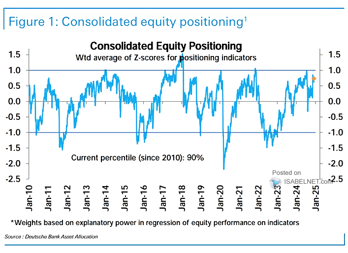 Other measures of positioning reflect this “all-in” attitude, such as the +45% jump in FINRA margin loan balances YTD, the surge in call buying and leveraged ETFs, and the Deutsche Bank Consolidated Positioning Index being in the 90th percentile, as shown below.