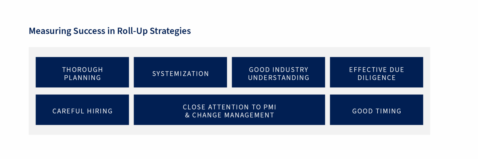 - A structured approach to identifying, evaluating, and integrating target companies.