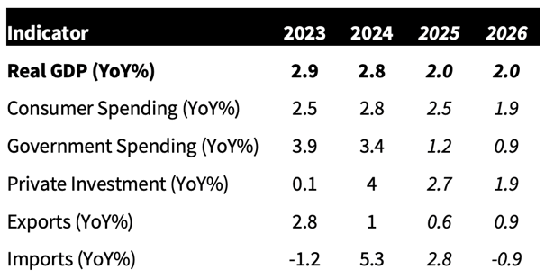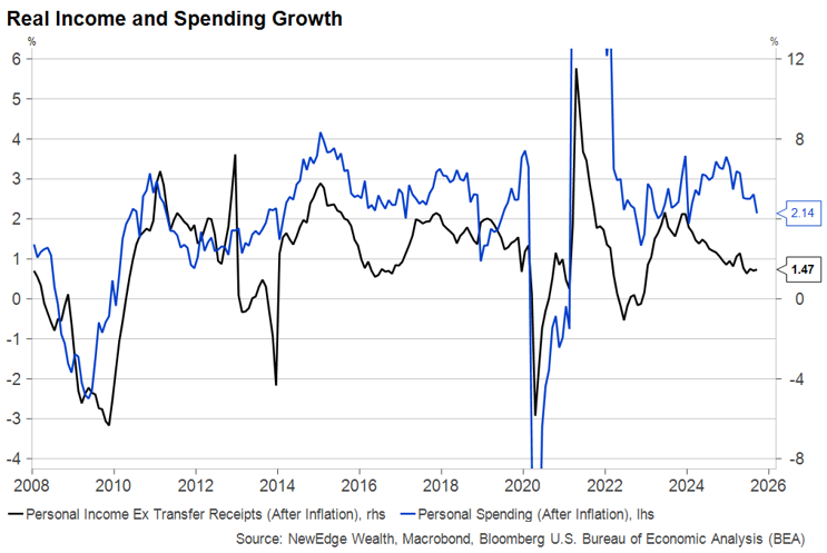 Of course, a return to trend (or slightly below trend) growth in 2026 is not all too industrious of a forecast, mostly in the context of next year’s large fiscal stimulus/deficits, expectations of further monetary stimulus/easing, and assumptions for continued large technology infrastructure investment. It must be noted, though, that these potential growth drivers could be countered by tariff impacts, immigration policy weighing on labor force growth, and a clear slowing in job additions in recent months (which could be related to immigration, growth uncertainty, and even technology adoption).