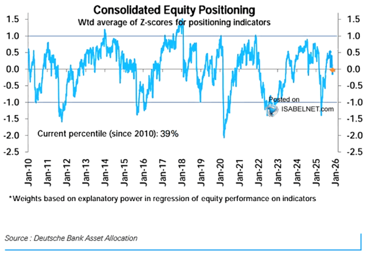 This observation about climbing EPS estimates has been a key reason why we saw potential for continued further upside in equity market prices, driven as well by light institutional positioning that still had (and has) room to chase markets higher. See the Deutsche Bank Consolidated Positioning in the below-neutral 39th percentile below.