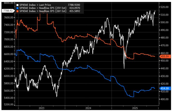 Equal Weight S&P 500 EPS Estimates for 2025 and 2026 (Bloomberg Consensus)