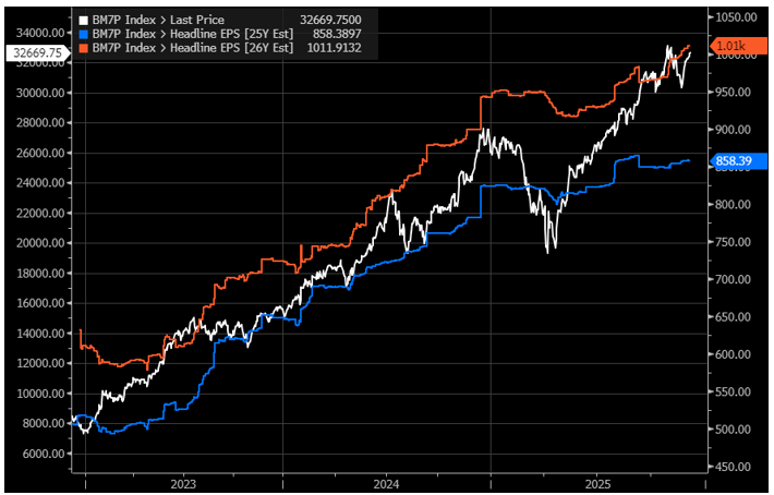 S&P 500 EPS Estimates for 2025 and 2026 (Bloomberg Consensus)