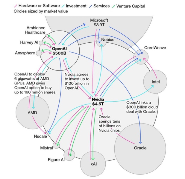 This kind of circular investment is nothing new for the likes of NVDA, who has long been investing in AI startups, which in turn rely upon NVDA chips for their technology. However, it is the massive scale of these investments and how they are funded (more debt and external funding vs. a reliance on internal cash flows) that is sparking concern amongst investors/bubble watchers.