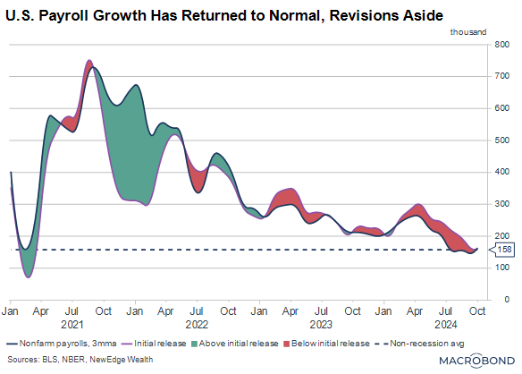 The Fed’s primary concern looking forward is that the labor market, which has cooled to a “normal” temperature, will cool further heading into 2025. Unfortunately, the full breadth of data is not currently giving us a clear reading as to how worried the Fed and recession watchers ought to be.