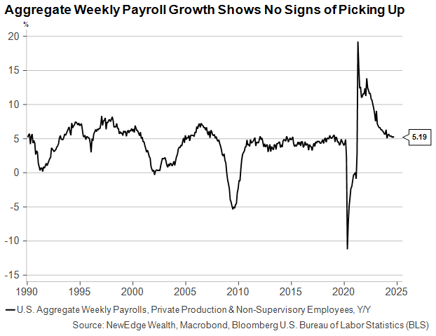 Importantly, despite impressive job gains in September, there is little reason to fear an overheating labor market is about to reignite inflation. The chart below shows aggregate payroll growth, which includes hours and wages in addition to net job creation, is coasting to a soft landing. A reacceleration here would indicate a tightening labor market and the possible return of high inflation. However, a glidepath down to levels comparable to the 2010s is hardly a harbinger of coming price pressures.