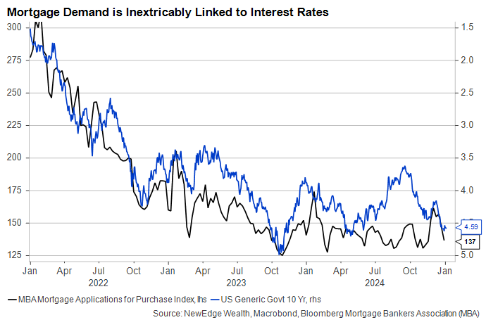 In this case, the “5” and “8” could be the mortgage rates necessary to kick-start the cycle (falling to 5%) into a higher gear with better market breadth or to tip us firmly into recession (rising to 8%) should conditions tighten again. With rates now in the low 7s, demand for mortgages has all but dried up again, and home sales – and the economic activity that tends to follow them – will be weak for the foreseeable future.